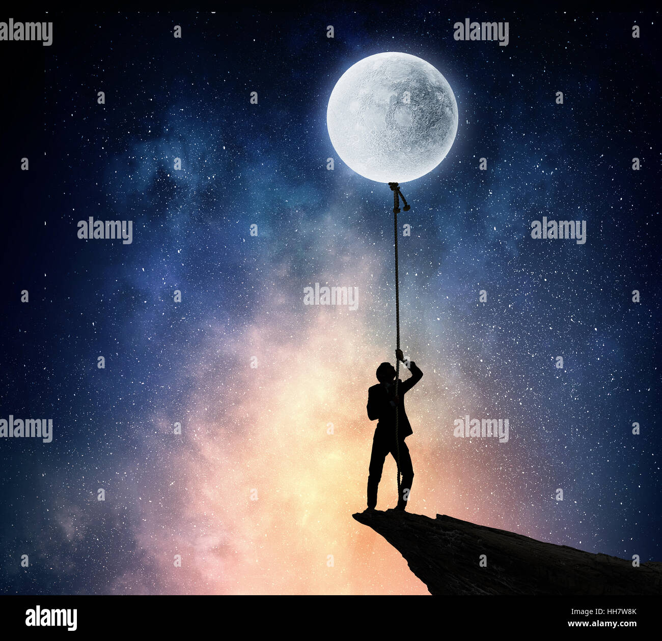 The Man Sit Against The Background Of Starry Sky. Time ...