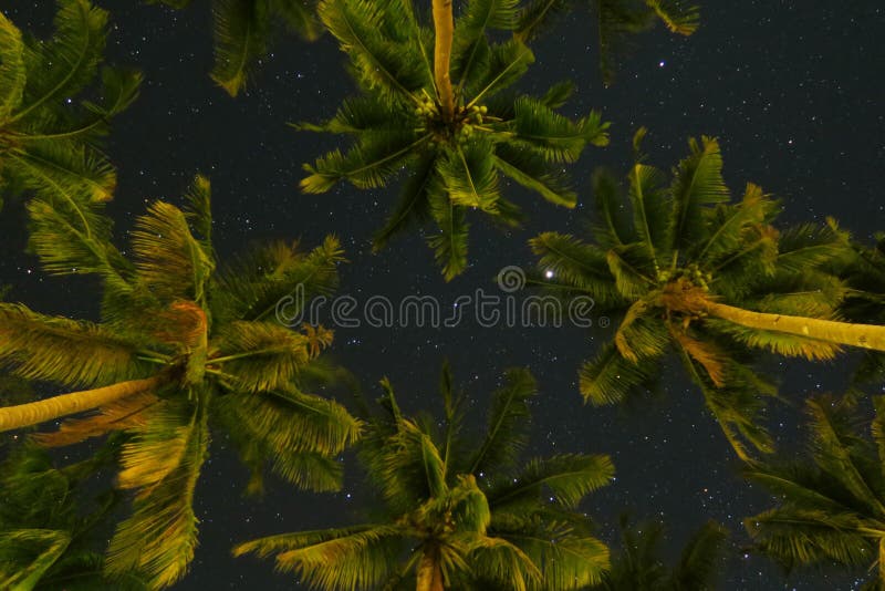 Tropical Palm Trees Bottom View On Starry Night Sky ...