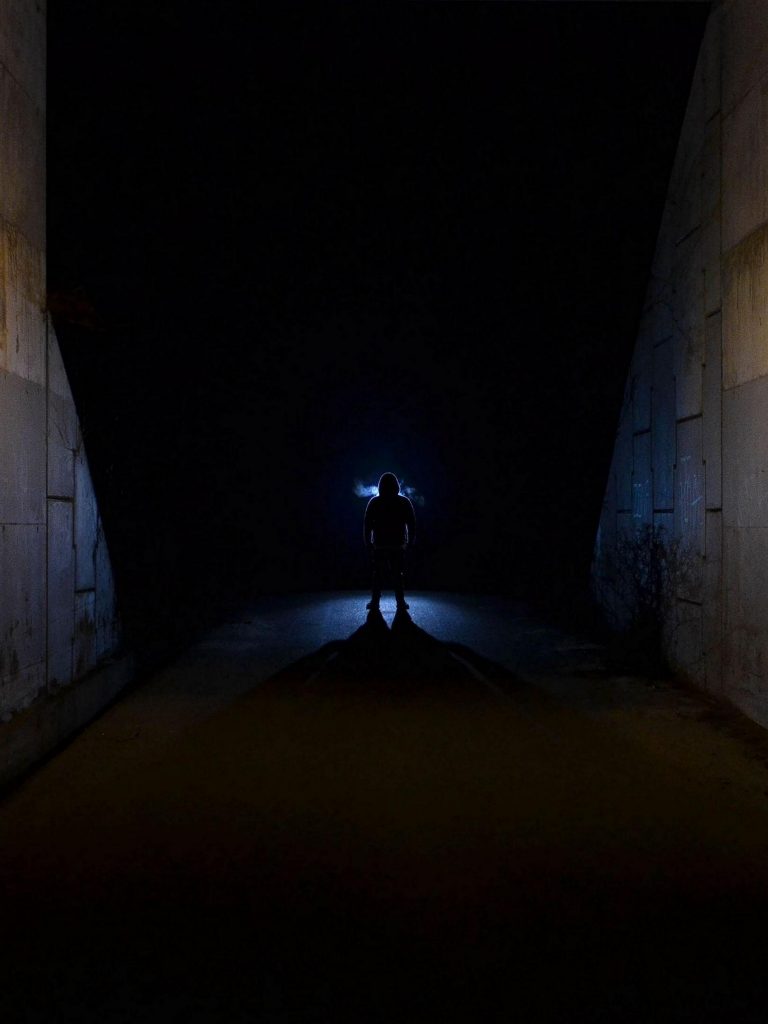 Mystical Silhouette Of Man Walking Towards Camera In Dark ...