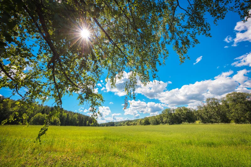Summer Background Concept Landscape; Field; Sun Rays ...