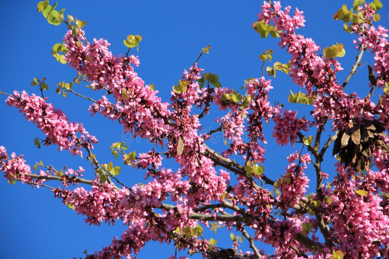 Small blossom spring pink peach flowers bloom on its branch in the field on the summer season on small plant and having small peta.
