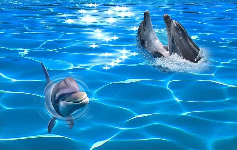 Window Mural Wallpaper Sea Water Dolphin Surface Ripple 3D ...
