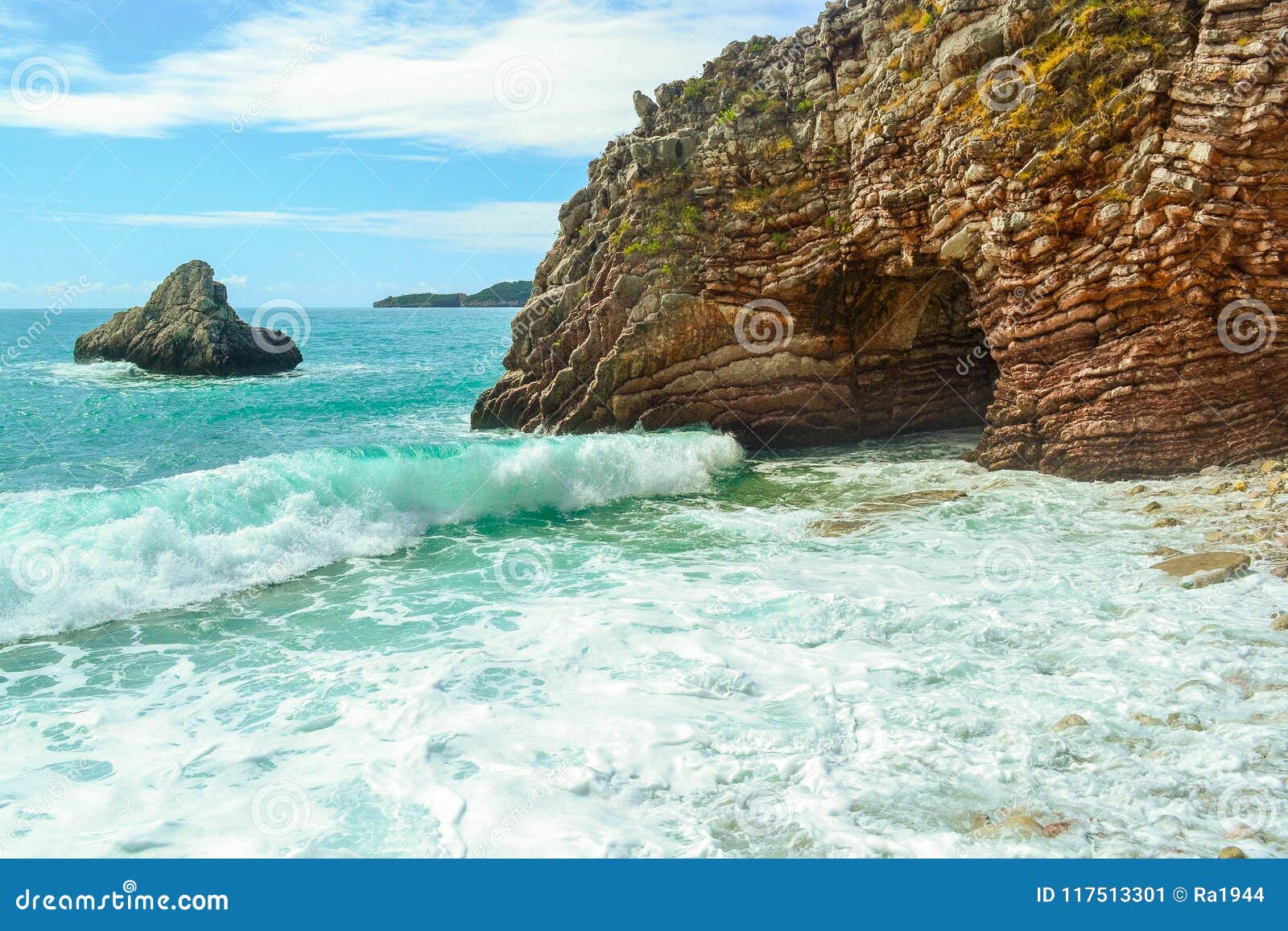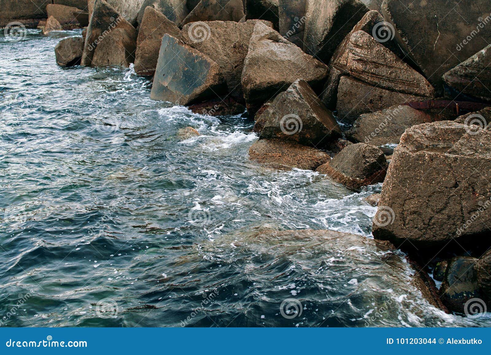 Sea waves break on stones stock photo. Image of spray ...