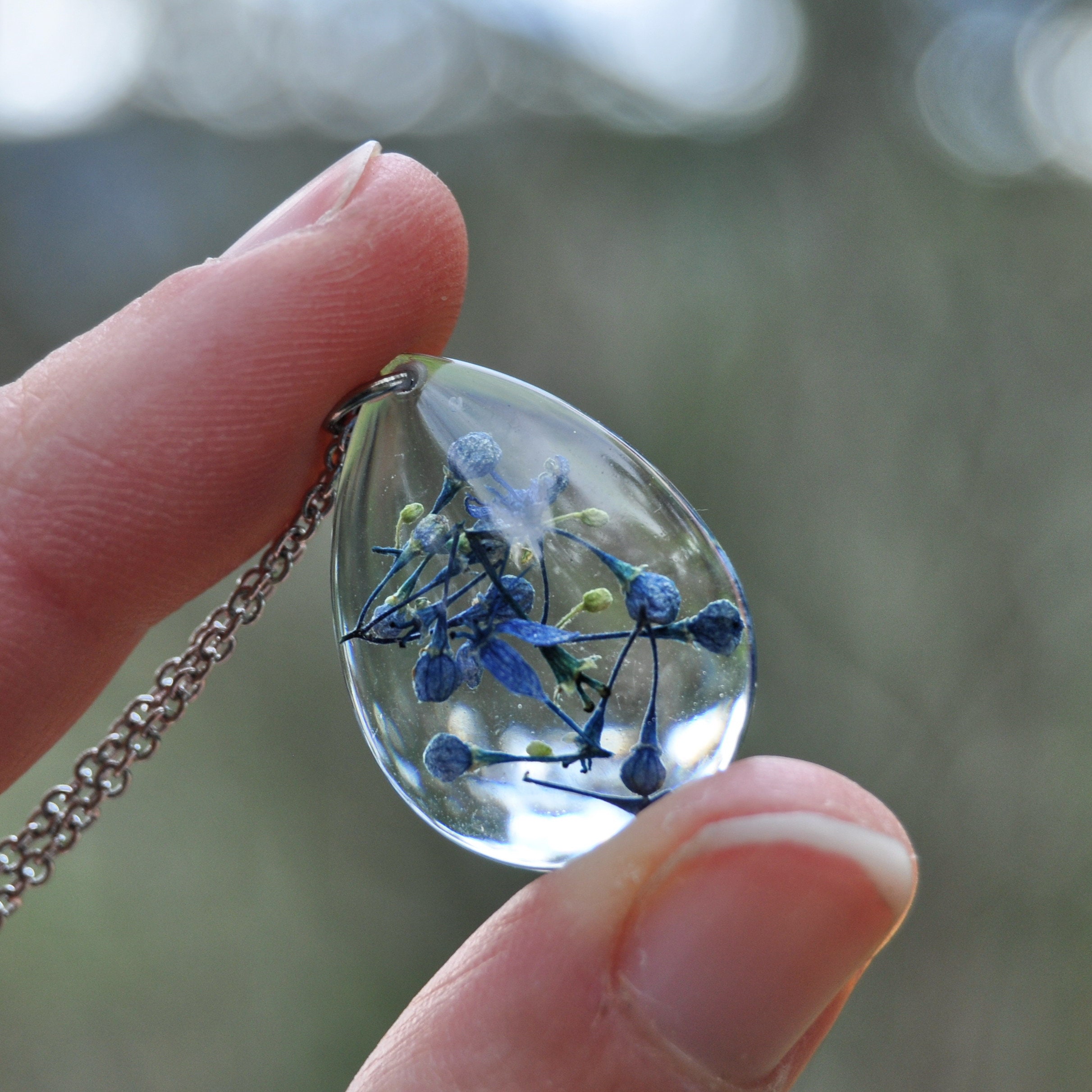 Blue Hydrangea Drop Pendant