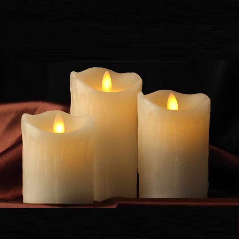 Moving Wick Dancing Flame Wax Pillar LED Candle Set Tears ...