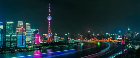 Download wallpaper 2560x1080 city, river, night, panorama ...