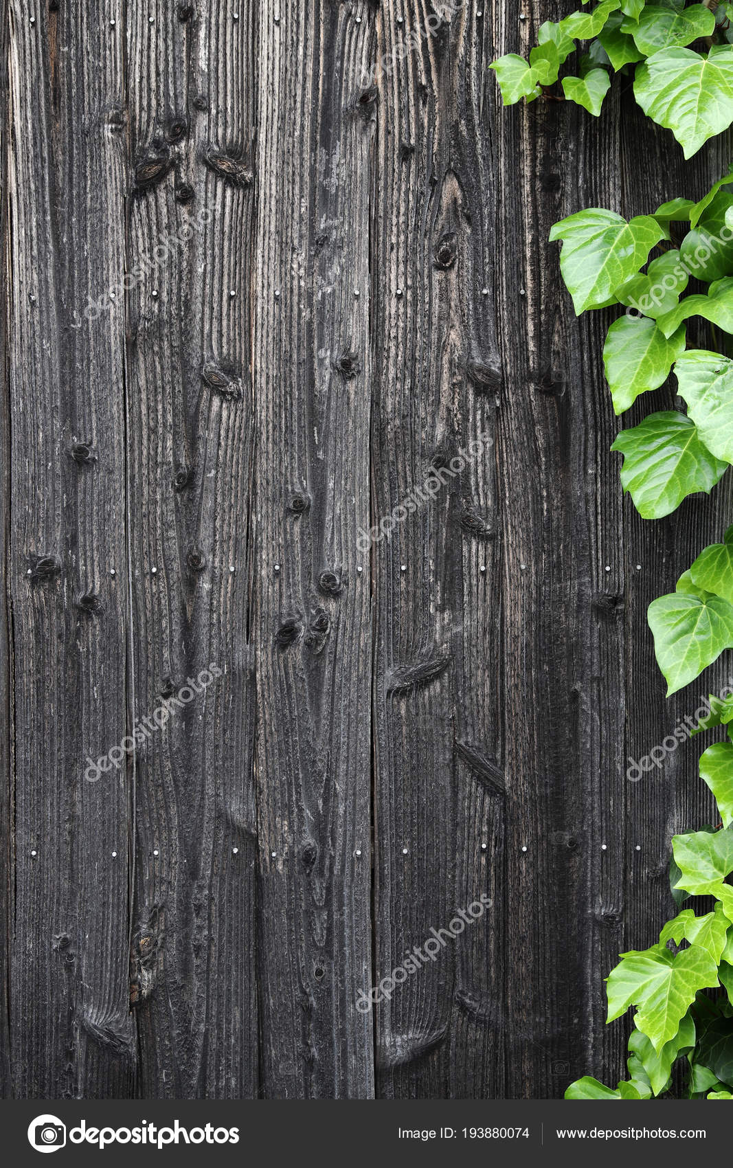 Old Black Wooden Wall Green Leaves Vines Background ...