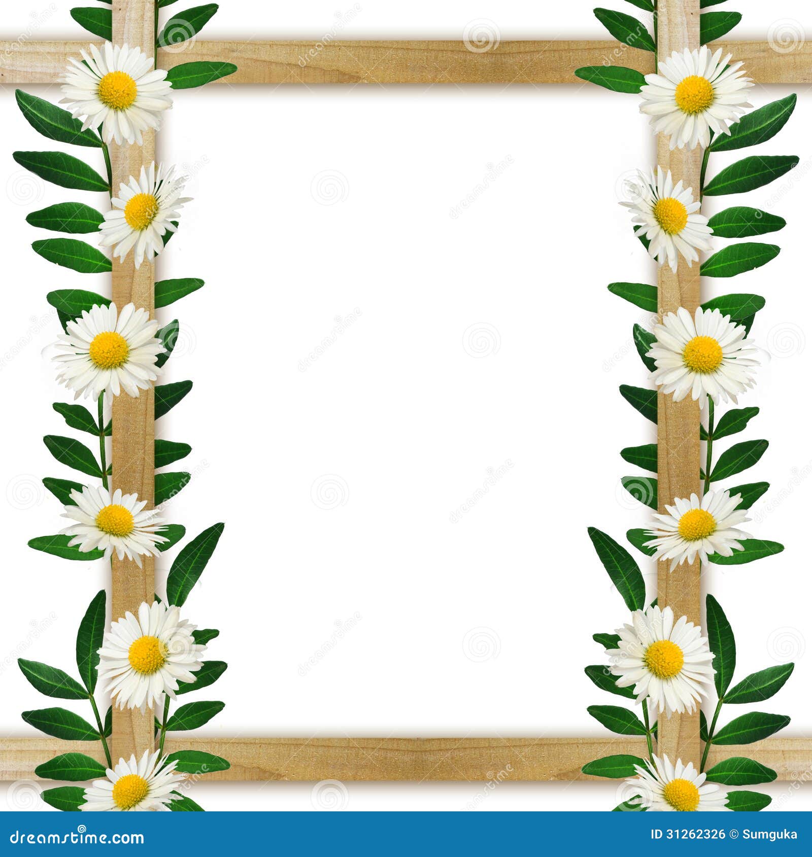 Wooden Frame With Leaves And Daisies Royalty Free Stock ...