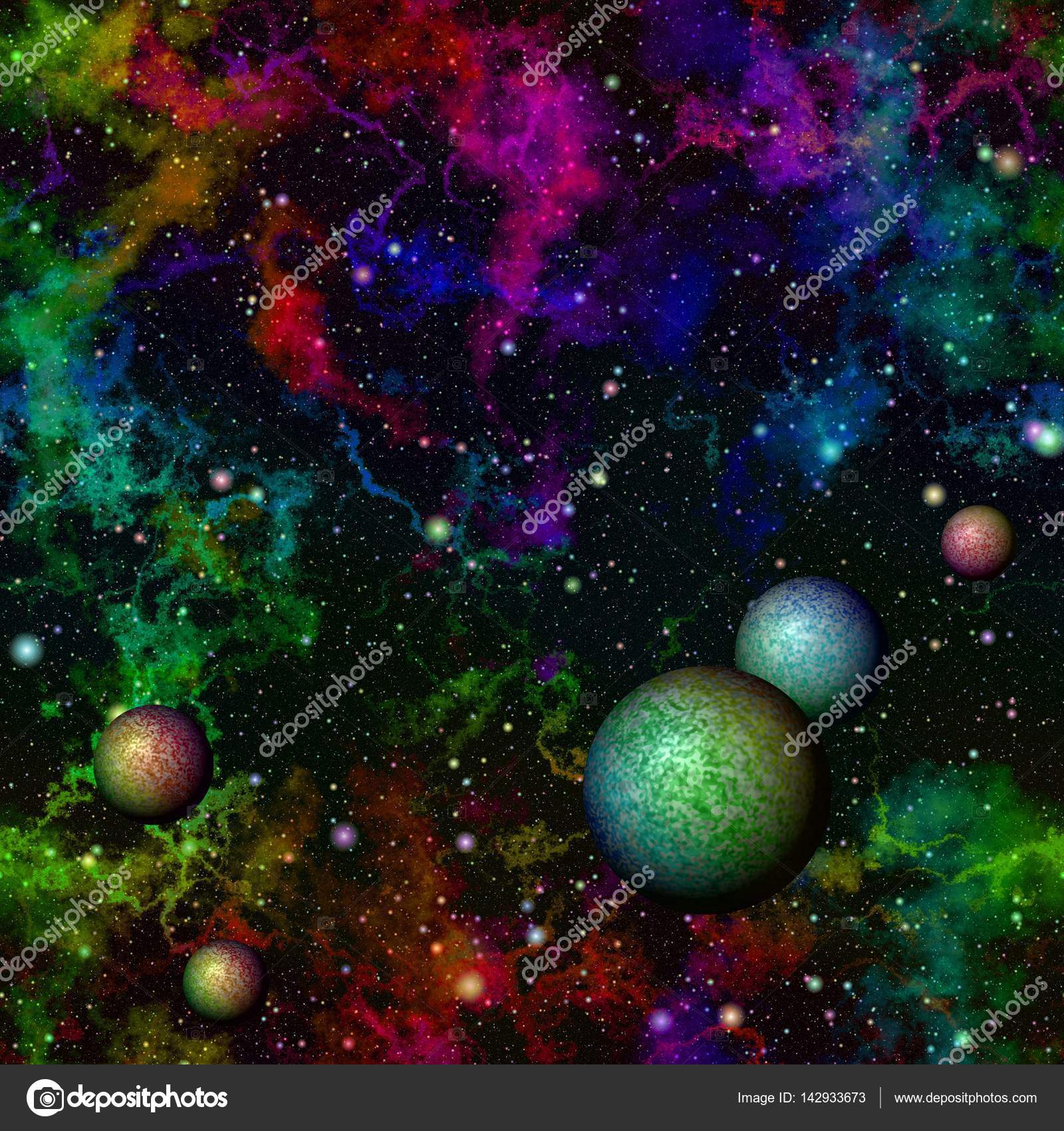 Abstract colorful universe with planets, Rainbow starry ...