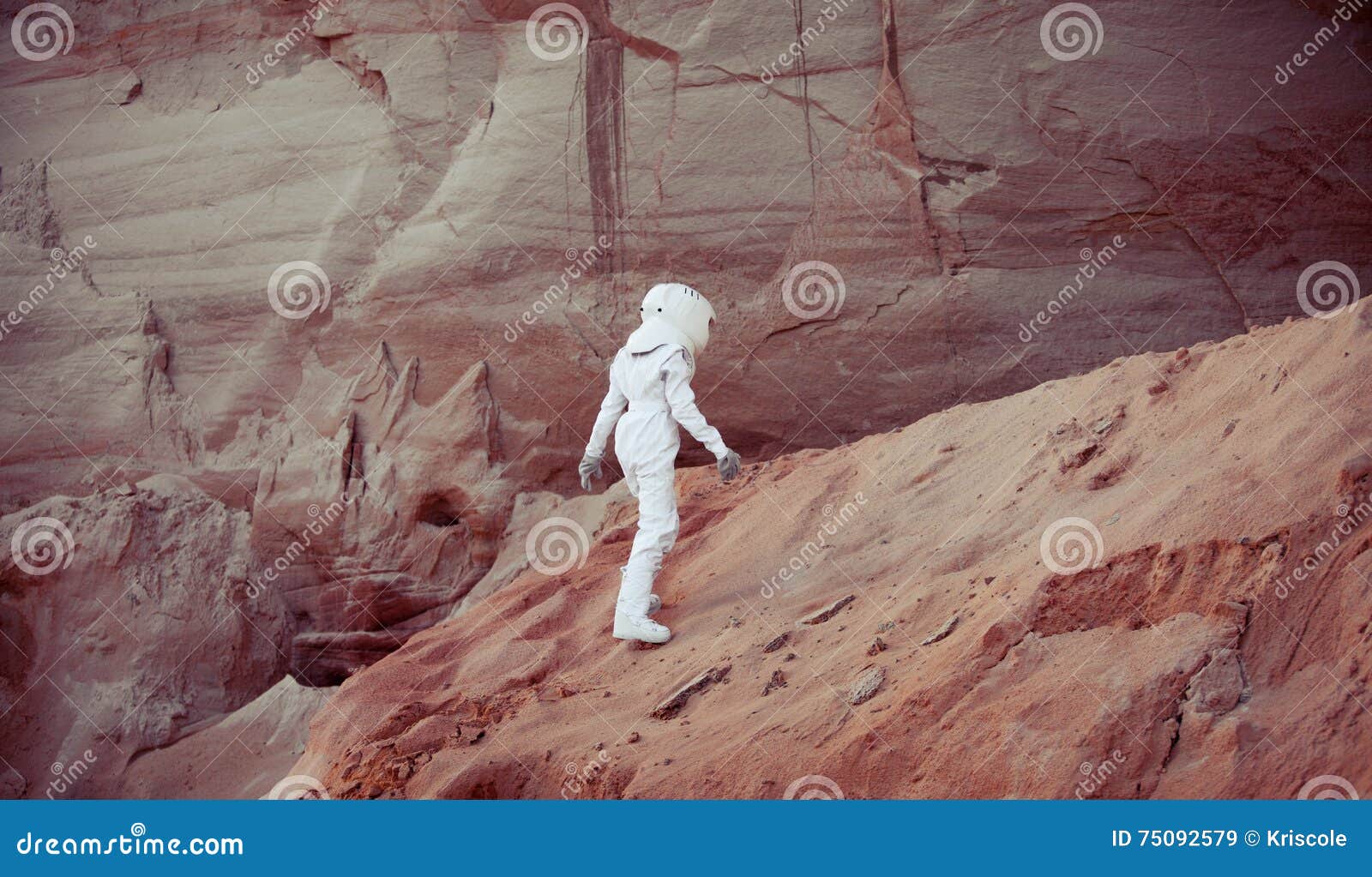 Futuristic Astronaut On Another Planet Image With The Effect Of Toning 6. A video by creative organization Planetary Collective called "Overview" shows this effect through space footage and the words of Apollo astronauts. Futuristic astronaut without a helmet in rays of another sun, image with the effect toning.