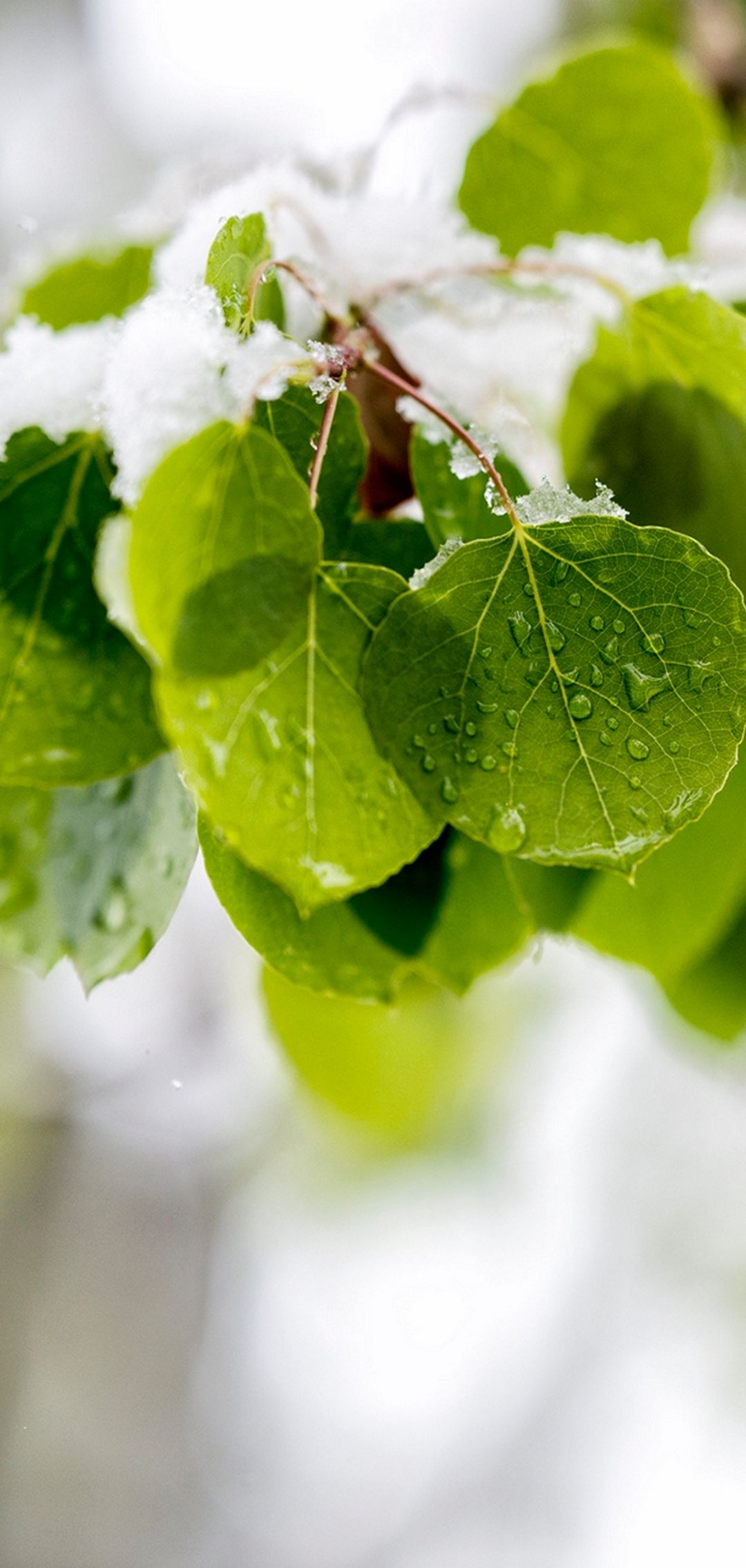 Leaves Tree Branch Snow - [1080x2270]